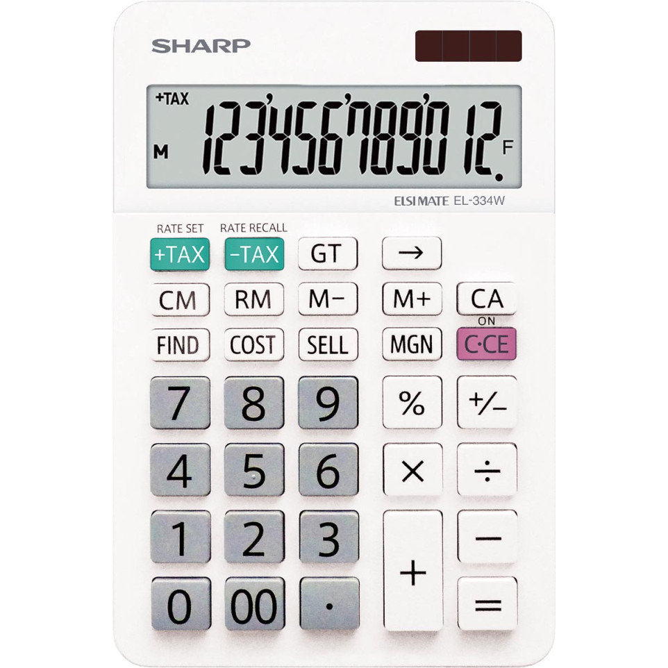 The Sharp EL-334W is a 12-digit rollerless desktop calculator in modern white design, ideal for business professionals handling profit margins, taxes, and daily calculations at home or in the office.