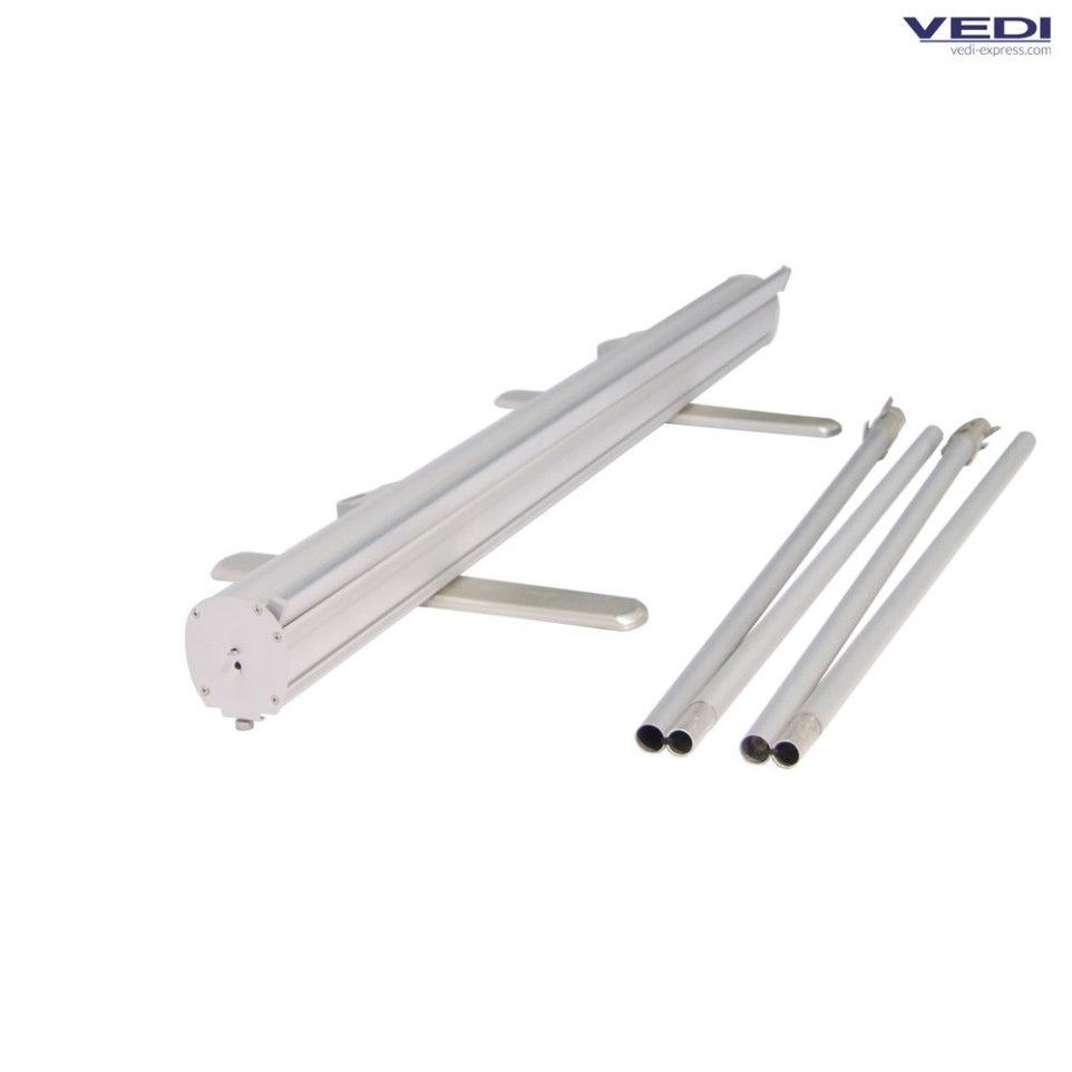 System composed of a rollup, an upright in 3 parts, a Veclip top bar and a double-lined protective carrying case. Intended for an image with a base of 100 cm and a height of 220 - 250 - 300 cm (+20 cm white strip at the bottom, for assembling on the rollup).
