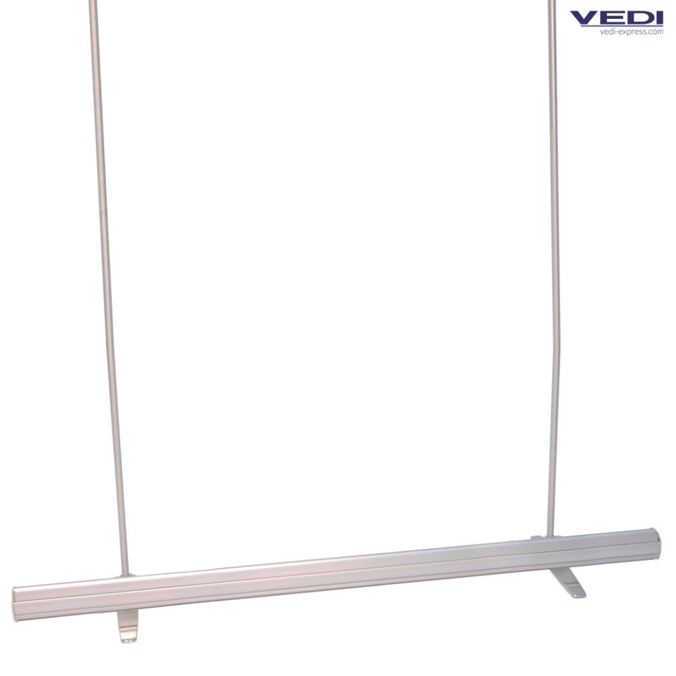 A3. Complete, ready-to-use system: Supplied with a 3-part upright, Veclip bar, and double-lined protective carrying case, the structure arrives as a full display solution that only needs your printed visual.