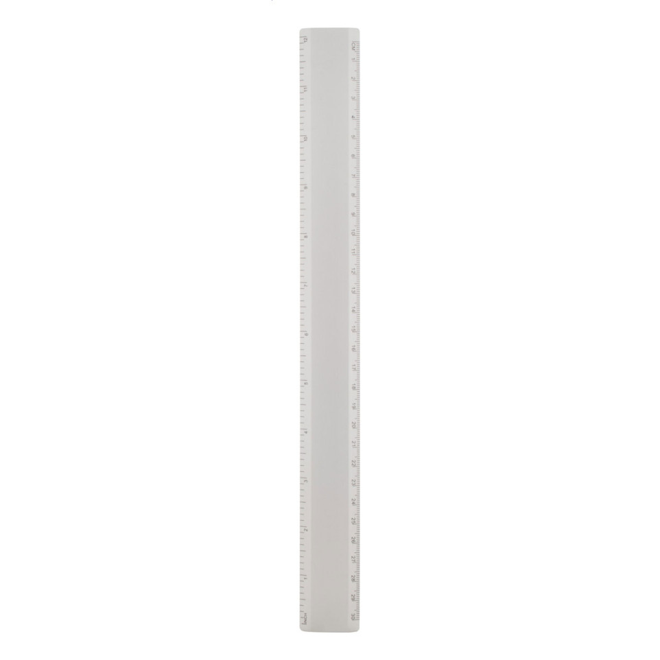 30 cm aluminium ruler in silver finish, designed for precise measurements in educational, technical, or office settings. Lightweight and functional for daily use.