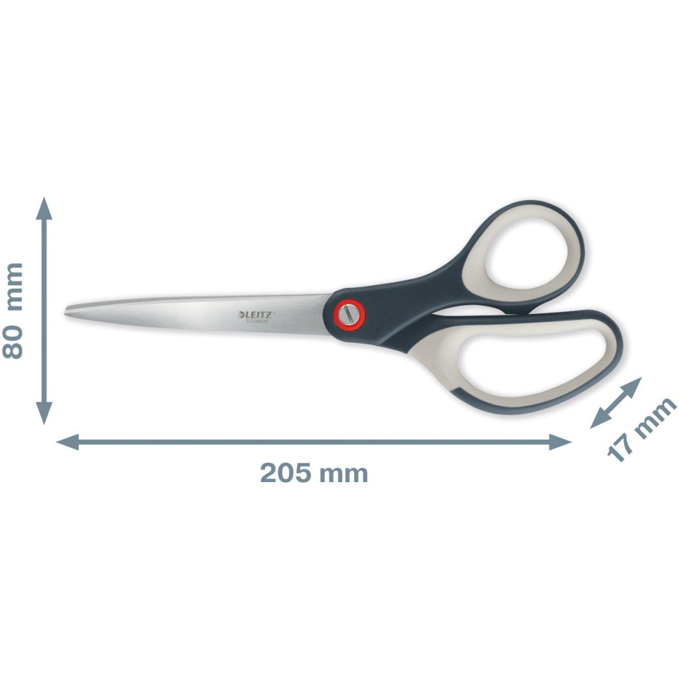 The Leitz Cosy scissors are designed for general-purpose cutting tasks, suitable for various industries including office, retail, and light manufacturing.