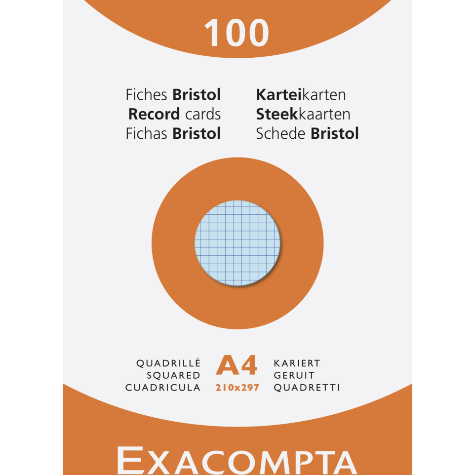 Pk 100 Exa Record Cards 210x297 5/5 Ast Box of 100 record cards - squared 210x297mm A very specific manufacturing process from fibres of selected origins. White cellulose u sed in neutral PH, can be used without damage to the environment - Exacompta record cards are products of very high quality with a proven and recognised reputation. Each kind of record card, squared punched, unpunched plain, assorted colours, or printed is delivered in boxes of different colours, easily recognizable and practical for sale. A very specific manufacturing process from fibres of selected origins. White cellulose used in neutral PH, can be used without damage to the environment - Exacompta record cards are products of very high quality with a proven and recognised reputation. Each type of record card is presented in a different colour case to be easily recognisable and convenient to use Packs of index cards in a box are available individually Weight 205gsm