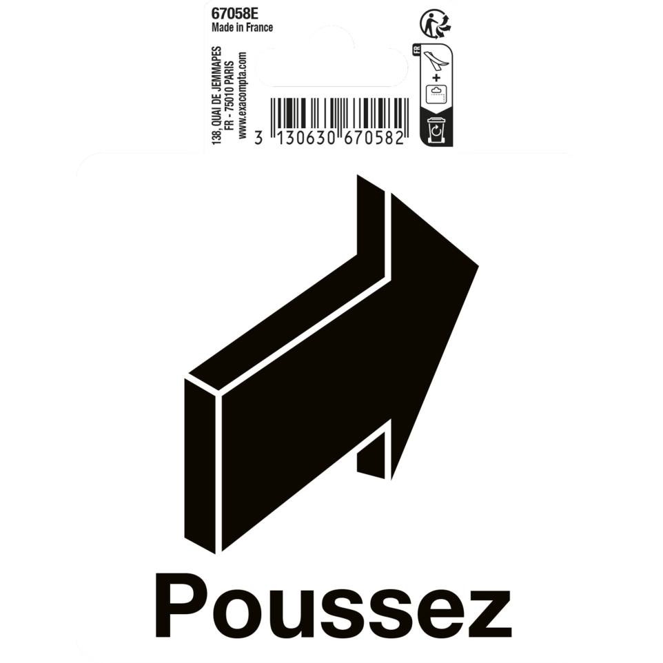 Adhesive vinyl pictogram Arrow push 10 cm Good signage is essential for guidance and information. This panel is printed on an adhesive PVC vinyl support, glossy finish for a very qualitative side. It is easily stuck on walls, doors etc. using the adhesive side. It can be used with the pull adhesive panel (ref.67052E) Made in France