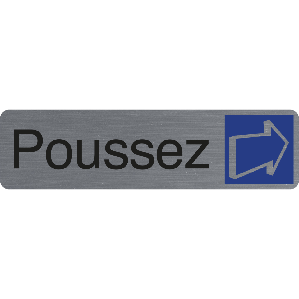 Sign adhesive aluminium effect Push 16.5 x 4.4 cm Good signage is essential to inform users and allow them to find their way around. This sign directs users by correctly showing key spaces This sign printed on 0.8 mm thick brushed aluminum effect is self-adhesive. It attaches easily and quickly to all types of surfaces. Made in France