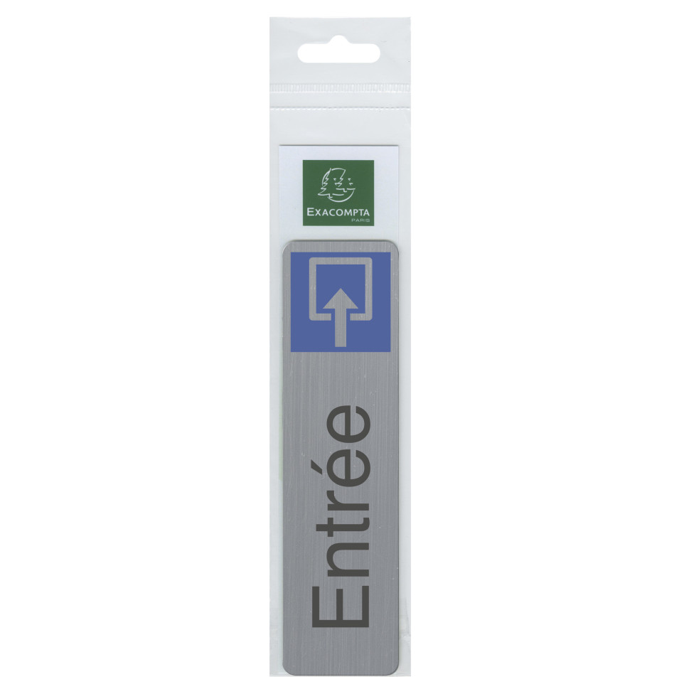 Sign adhesive aluminium effect Entry 16.5 x 4.4 cm Good signage is essential to inform users and allow them to find their way around. This sign directs users. This sign printed on 0.8 mm thick brushed aluminum effect is self-adhesive. It attaches easily and quickly to all types of surfaces. Made in France