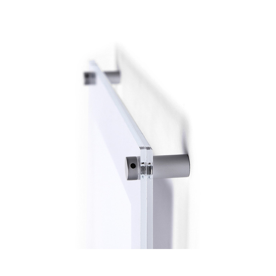 AdvantagesThe panel securely holds posters between two clear acrylic sheets using polished-edge clamps. Attach the provided wall spacers to mount it neatly onto any flat wall surface. Swap posters easily by loosening the fixings when needed.