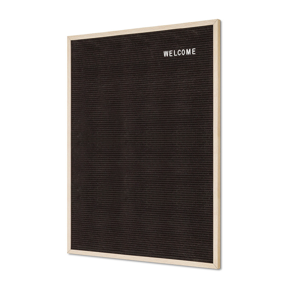 The Black Letter Board 60 x 80 cm is a stylish display solution ideal for communicating customizable messages in offices, hospitality settings, or commercial spaces. Its ample surface and included letter set enable clear, impactful information sharing.