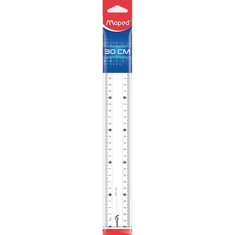 The Maped Latte Essentials 146 is a transparent 30 cm plastic ruler designed for accurate measuring and drawing. It features double graduation for metric and imperial readings, and is suitable for schools, offices, and technical work.