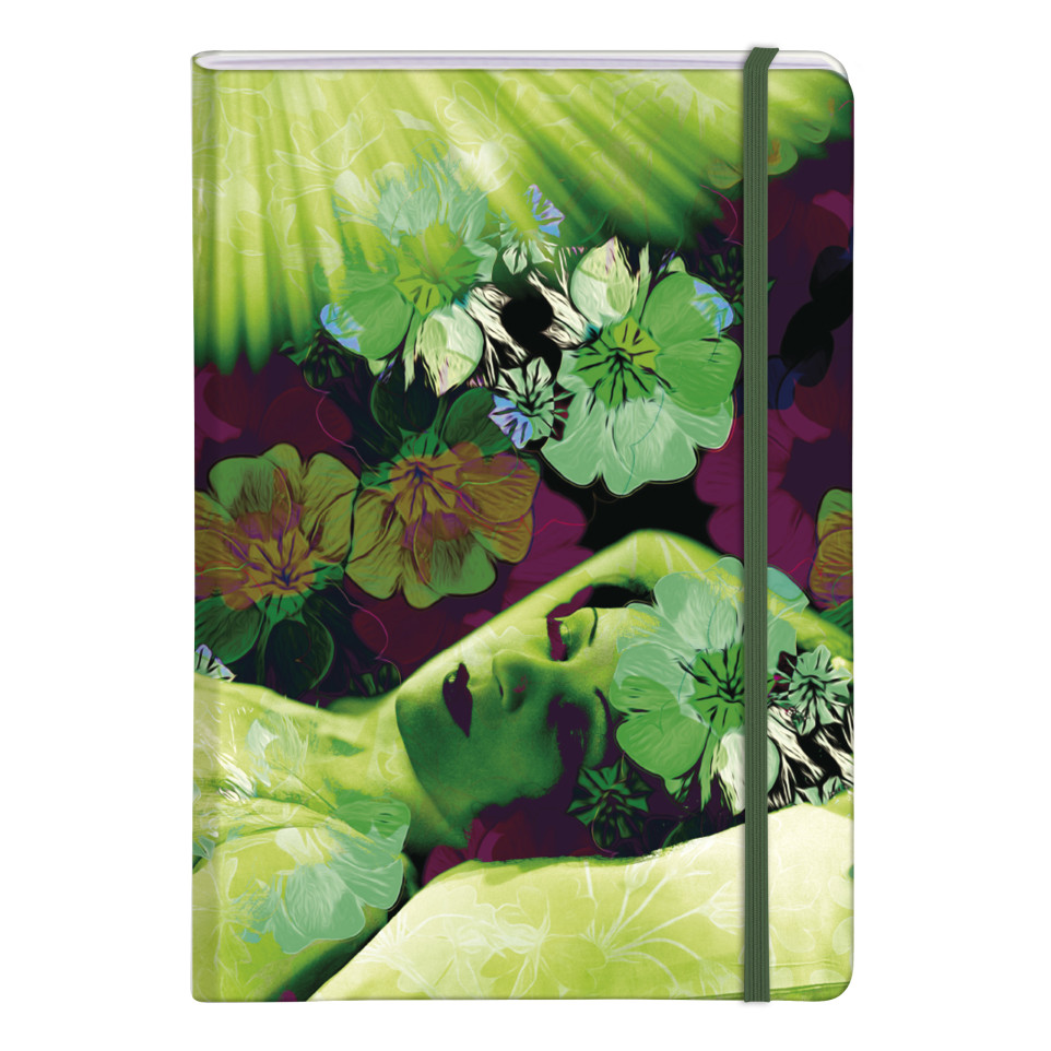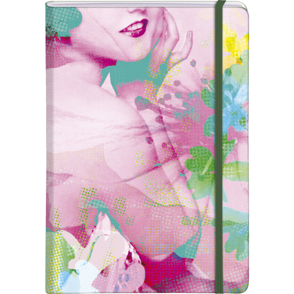 Egerie, Cahier rembordé rigide A5 - 14,8 x 21 cm 96 pages ligné avec élastique, ass. Depuis toujours les femmes inspirent les artistes...Des photos se superposent aux dessins, des femmes se superposent aux fleurs, rappelant le Pop Art. Dans la mythologie romaine, Égérie est la nymphe des ources, cette allusion à l'eau, à la force féminine, rejoint l'esprit de Clairefontaine. Toujours la même femme, avec la grâce élégante des années 50, toujours le même visage, flou, mystérieux mais tellement présent. Parfois on n'en voit que la bouche, le cou, le buste et pourtant tous les carnets éclatent, rayonnent, nimbés d'une lumière végétale. Avec audace, Clairefontaine nous permet de ressentir de façon sourde, cette secrète influence féminine.. Avec insolence, les couleurs profondes du mauve, de l'indigo provoquent, contrastent avec des couleurs vives citron, fuchsia. La collection Egerie un élégant pouvoir. Couverture papier grain fin, papier ivoire, 2 visuels