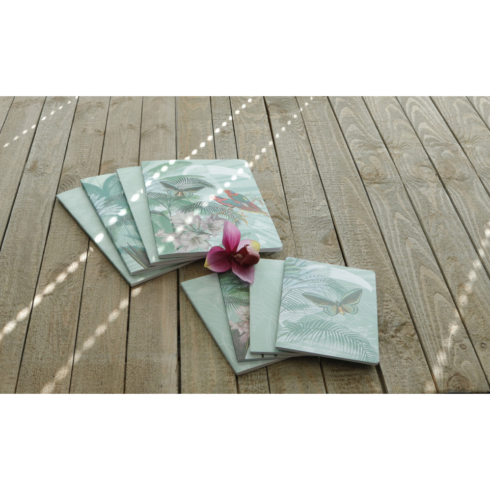 Jungle harmony, Cahier piqué A4 - 21 x 29,7 cm, 96 pages, ligné + marge, ass. Tiphaine Massari et Agathe Hondré toutes deux graphistes designer au sein de Polygonia.paris ont imaginé un ensemble décoratif enchanteur. A partir d une évocation de la forêt amazonienne les visuels ont été réalisés avec un traitement graphique de différentes origines : documents botaniques, bases photographiques et dessins d invention. Ce délicat mélange crée une osmose entre le monde végétal et le monde animal, entre le monde réel et le rêve et nous plonge dans un univers naturel merveilleux. 2 visuels assortis motifs Végétal Impression de la couverture Recto/Verso pour un beau rendu La qualité et la douceur du papier Clairefontaine vélin velouté blanc 90g, certifié PEFC et fabriqué dans les Vosges par Clairefontaine.