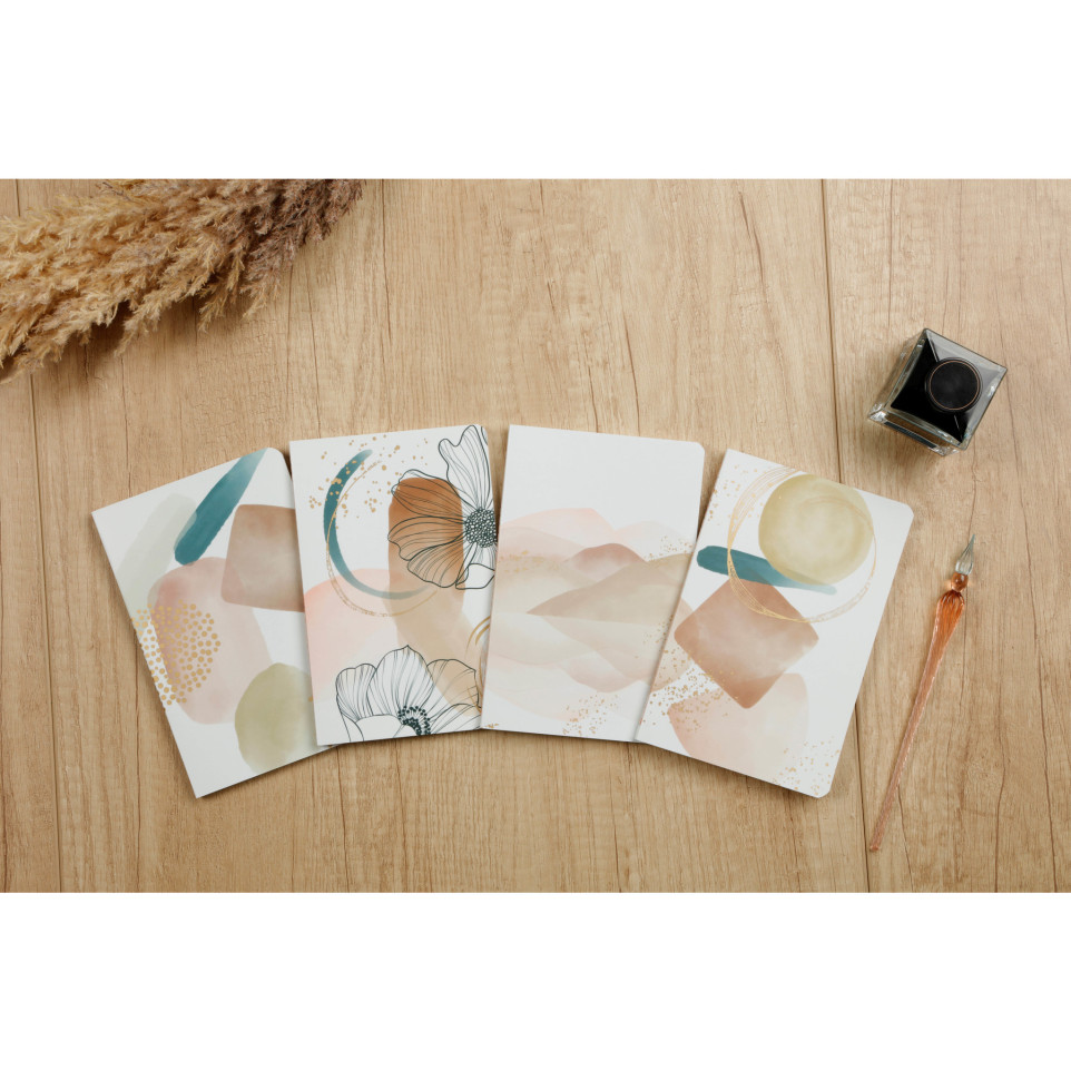 Evanescence, Carnet cousu fil 11x17cm, 96 pages, ligné, ass. Edith Duprez-Chenu est créatrice de motifs et illustratrice chez Edith and Co Design. Passionnée par les couleurs, les matières, les motifs dans tout ce qui l'entoure, Edith Duprez s'efforce de capturer la beauté de la vie à travers des coups de pinceau fluides et intuitifs. Pour cela, elle affectionne particulièrement l'aquarelle, ce medium qui a sa propre expression, sa délicatesse et qui révèle des couleurs imprévisibles ! Dans cette nouvelle collection, Edith mêle formes géométriques et abstraites, line art et paysages aquarellés dans des nuances de rose, beige, ocre et bleu. Ces teintes poudrées sont sublimées par des touches dorées pour un rendu plein de douceur. 4 visuels assortis avec 2 visuels géométriques, 1 visuel fleurs, 1 visuel paysage rose. Couverture pelliculage satiné, sérigraphie or. La qualité et la douceur du papier Clairefontaine vélin velouté blanc 90g, certifié PEFC et fabriqué dans les Vosges par Clairefontaine.
