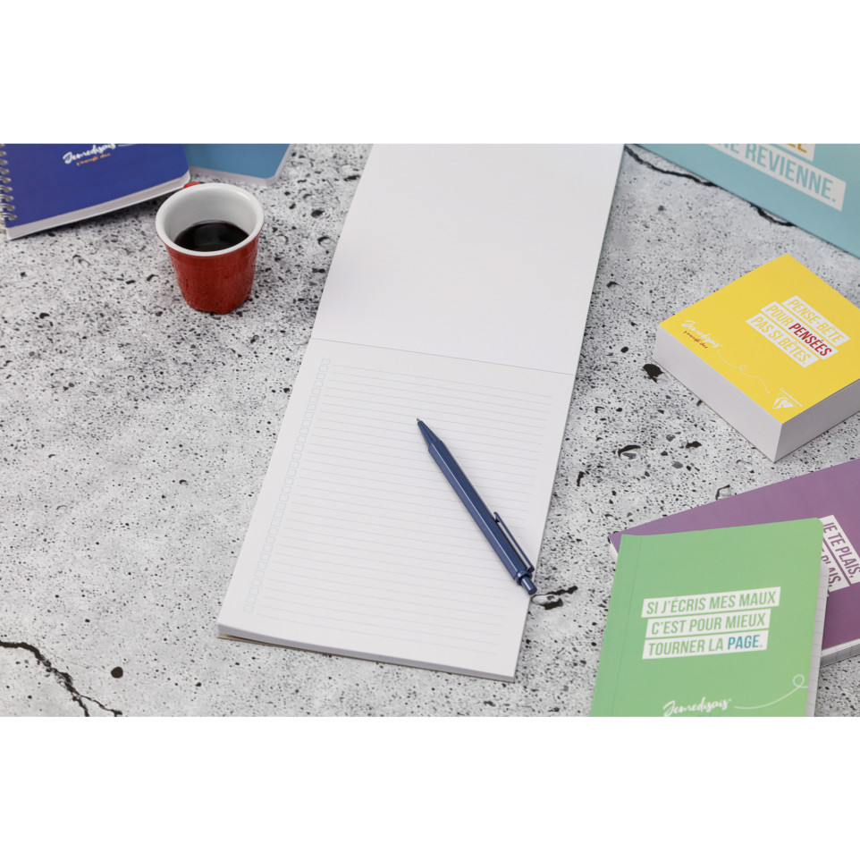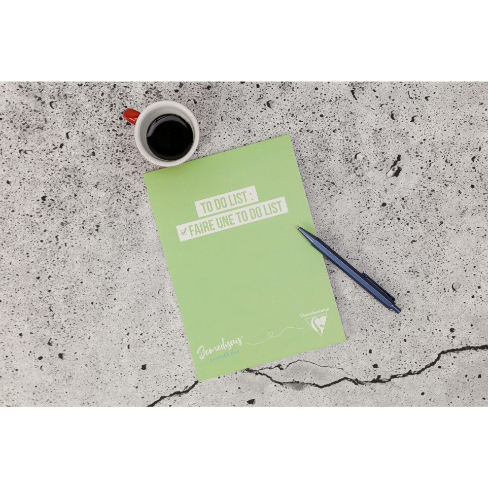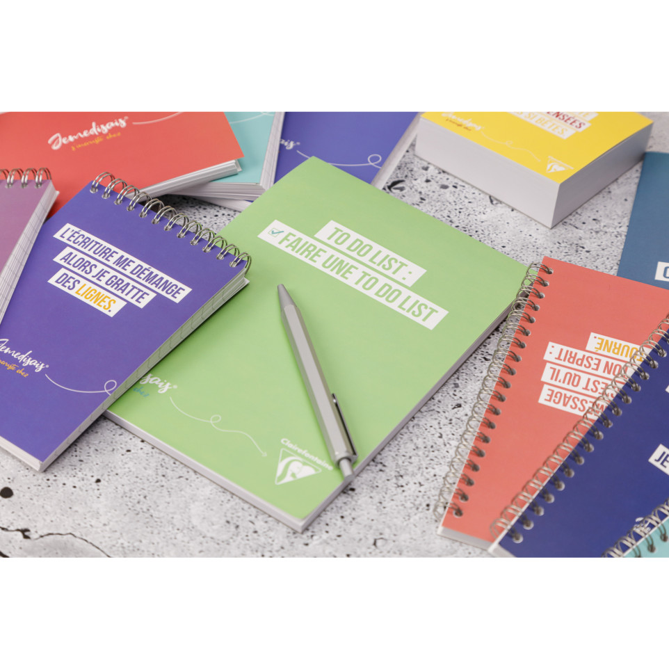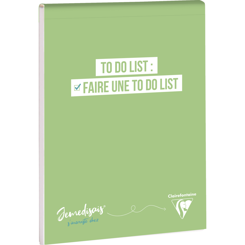 Jemedisais, Bloc to do list A5 14,8 x 21 cm, 52 feuillets imprimés Déjà très présent dans sa ville et sur Instagram, l'artiste-auteur toulousain Jemedisais s'incruste aujourd'hui chez Clairefontaine, le temps d'une collaboration haute en couleur. Attention, il ne vient pas seul ! Il emmène avec lui son amour des mots, son sens de la punchline et son regard espiègle sur les choses du quotidien. Cette collaboration fait la part belle aux textes. À ceux de Jemedisais, bien sûr, mais surtout à tous ceux que vous avez dans un coin de la tête et qui ne demandent qu'à être écrits dans les pages de cette collection atypique. 1 visuel. Couverture carte, pelliculage mat. Papier Blanc Vélin Velouté 90g, pour une sensation de glisse unique, fabriqué en France par Clairefontaine. Certifié PEFC, pour la gestion durable des forêts.