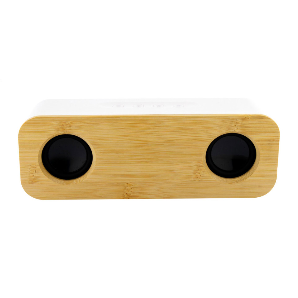 The speaker is made from recycled ABS plastic and bamboo for a combination of durability and eco-friendly appeal.