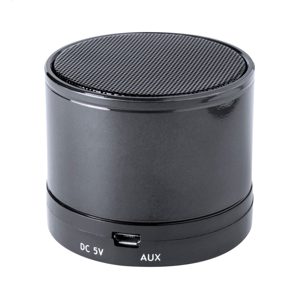 Compact and versatile Bluetooth speaker designed with recycled materials. Equipped with radio, MP3 player, hands-free call capability, and a built-in 300 mAh rechargeable battery for convenient music and communication on the go. Includes USB charger and aux-in cable.
