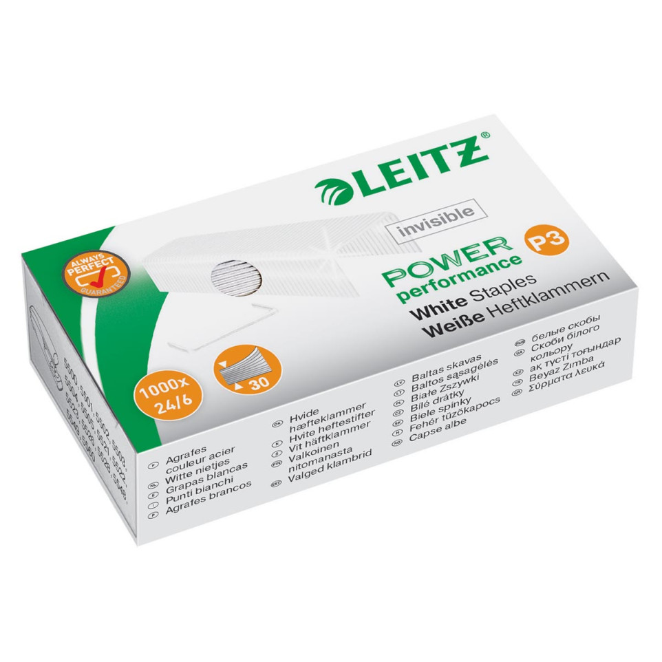 Leitz Power Performance P3 White Staples are precision-engineered for reliable stapling of up to 30 sheets of 80gsm paper, making them suitable for busy office and home environments. Supplied in a box of 1,000 staples, they ensure long-lasting productivity.