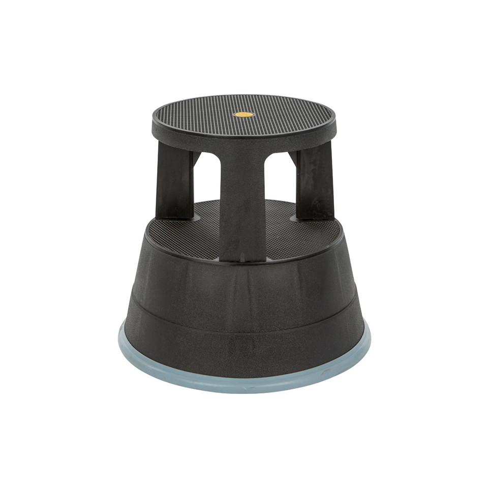 This synthetic black kick step is designed for use in various settings, including warehouses, construction sites, and industrial environments. It provides a sturdy platform for workers to step on while maintaining a safe distance from the ground.