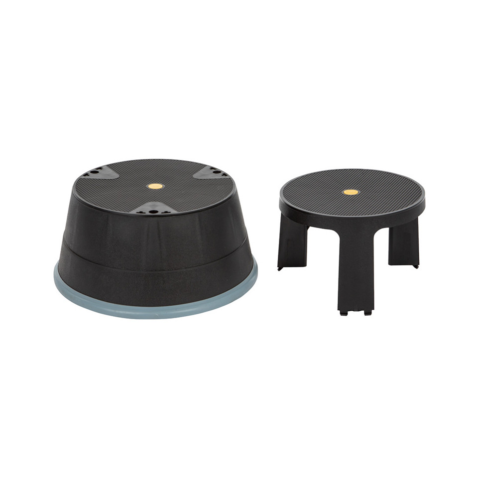 Place the kick step in the desired location and ensure it is stable. Step onto the platform to elevate yourself safely. The kick step is designed to provide a secure foothold, allowing you to work comfortably at elevated heights.