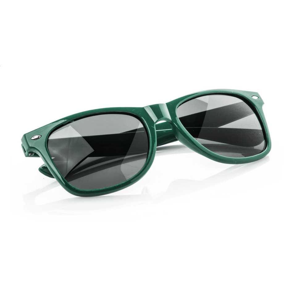 Nazare dark green sunglasses offer lightweight UV protection with a sleek plastic design. Perfect for outdoor activities, promotional events, and corporate giveaways.