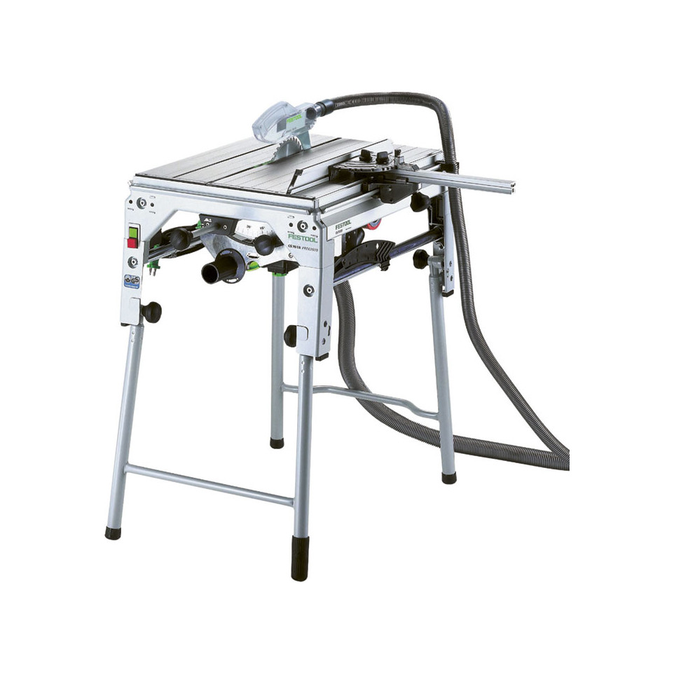 The Festool Precisio CS 70 EB precision table saw is designed for versatile, precise rip and cross cuts in woodworking tasks, suitable for workshops or on-site installation use.