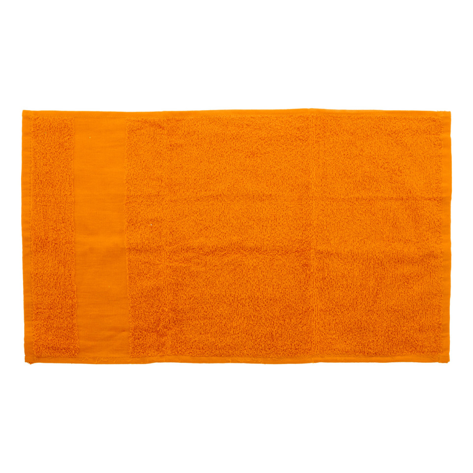 View products in the same categoryA high-quality orange cotton terry towel featuring a hanging loop and printable border. This 30×50 cm guest towel combines practicality with promotional potential, perfect for hospitality settings or branded merchandise.