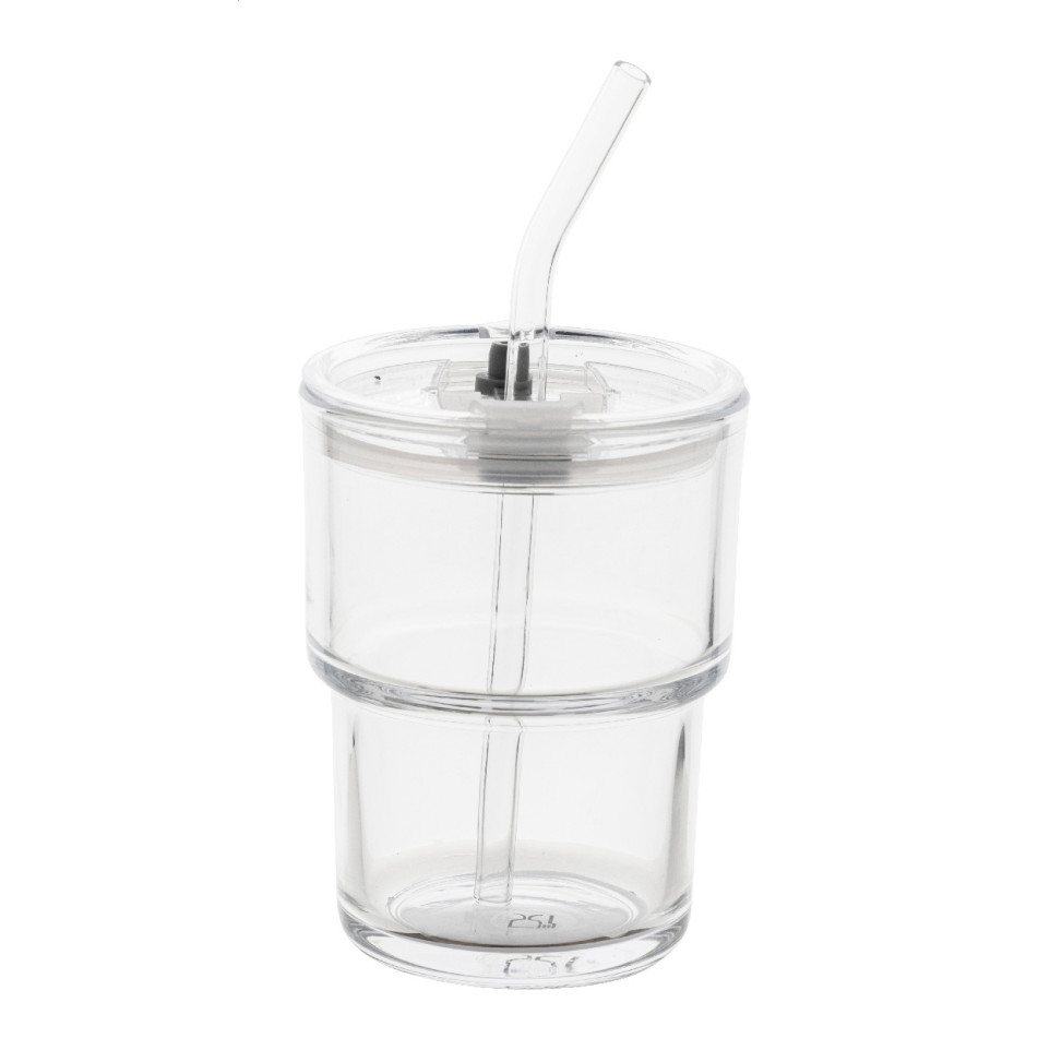 Glassip is a transparent glass travel cup with a capacity of 400 ml, equipped with a plastic drinking lid and a glass straw. Suitable for both hot and cold drinks, it is designed for on-the-go use in daily commutes, office, or outdoor activities.