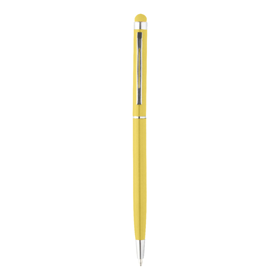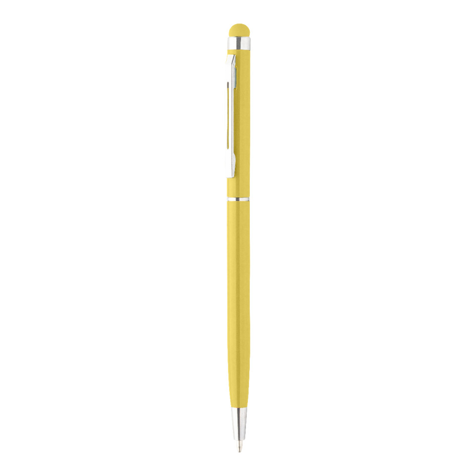 The Todox yellow touch ballpoint pen is an aluminium writing instrument featuring a coloured body with a matching stylus tip, designed for use on both paper and touch screens. Ideal for daily office tasks or on-the-go digital interactions.