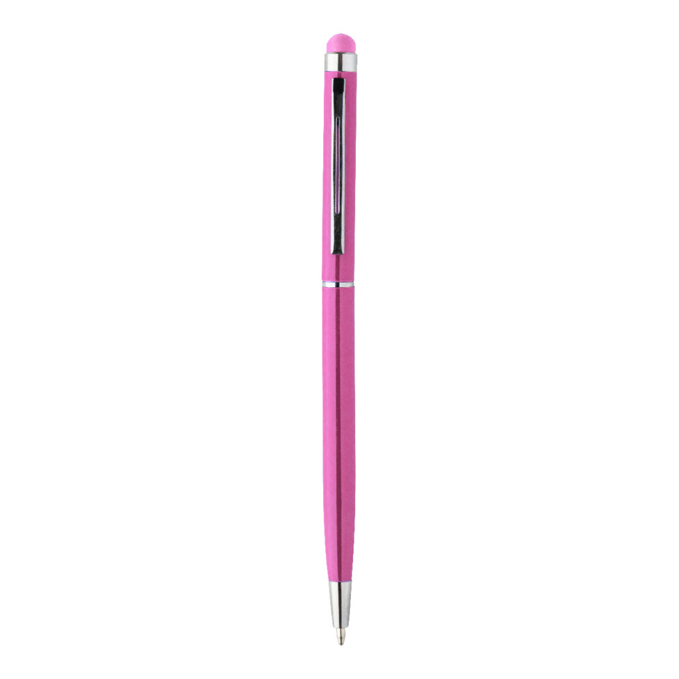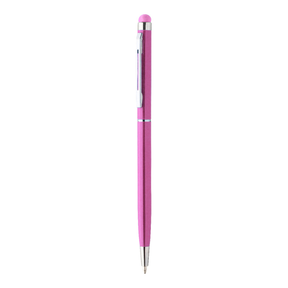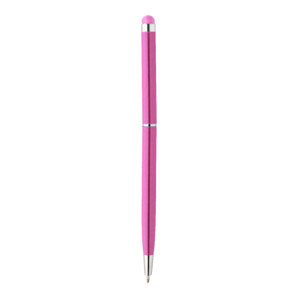 The Todox pink touch ballpoint pen is a dual-function writing instrument featuring both a traditional ballpoint tip and a touch screen stylus, crafted from aluminum with a vibrant pink body and matching touch point.