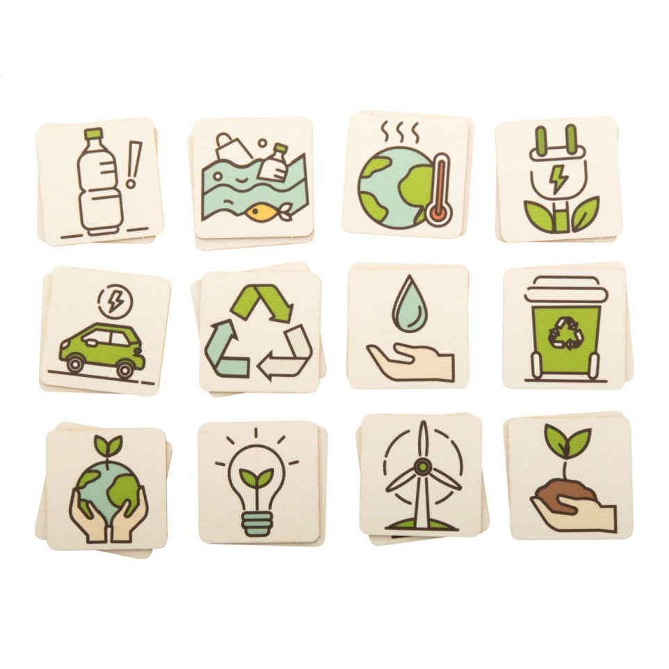 Both the game and the box are made of paperboard and paper, combining durability with a natural look.