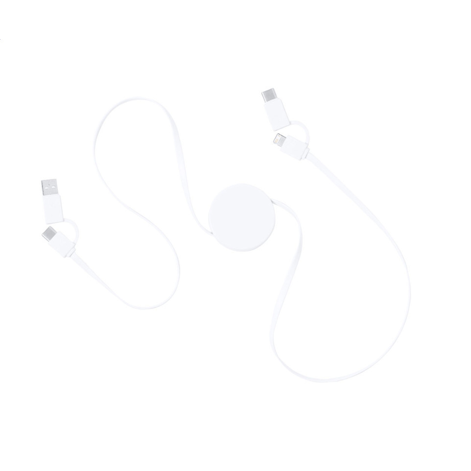 Compact and adaptable, the Enari white USB charger cable features a telescopic design and provides versatile charging for multiple devices. Suitable for travel, office use, or daily charging needs, it supports micro USB, USB-C, and Lightning connectors with both USB and USB-C inputs.