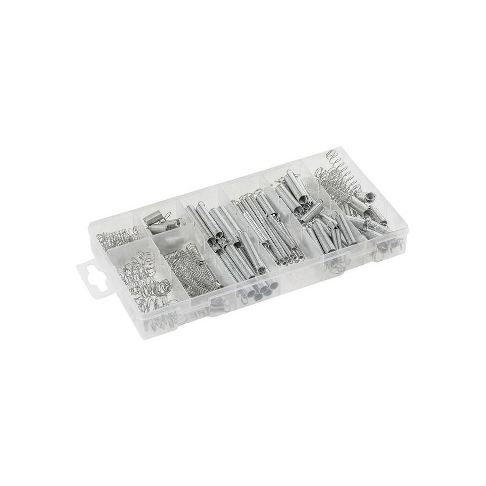 Select the appropriate spring type and size from the box for your repair or assembly task. Use in mechanical assemblies, tool repairs, or custom projects requiring precise tension or compression. Springs can be easily installed using standard hand tools, offering a convenient solution for both professionals and DIY enthusiasts.