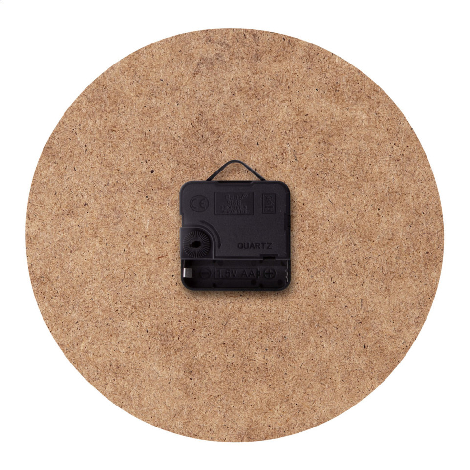 How is the clock mounted on the wall? The clock comes with a standard hanging mechanism on the back that allows for easy wall mounting with a single nail or hook.