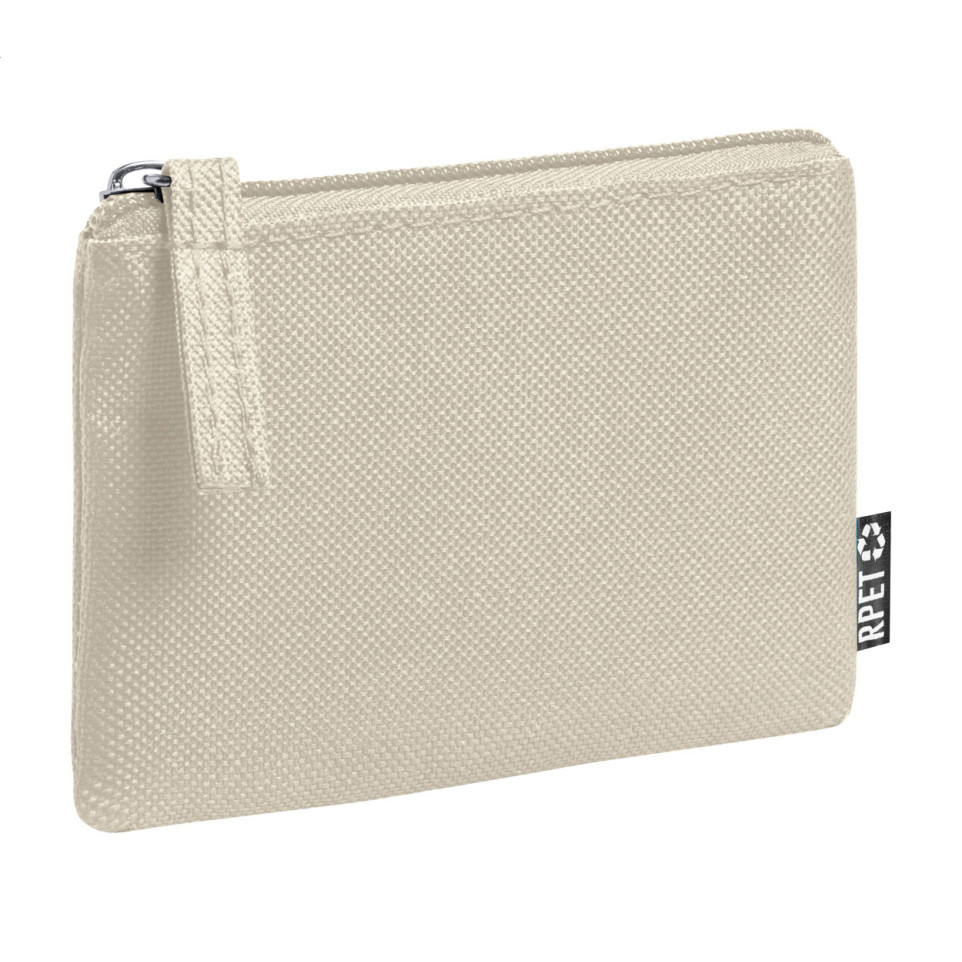 Compact zipped purse made from 600D RPET polyester in beige. Designed for everyday use, it securely stores coins, cards, or small essentials while supporting sustainable practices.