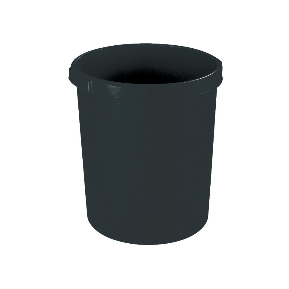 The Han wastepaper basket is a round, synthetic container designed for collecting general office or home paper waste. With a capacity of 30 liters and a sleek black finish, it suits modern workspaces and communal areas.