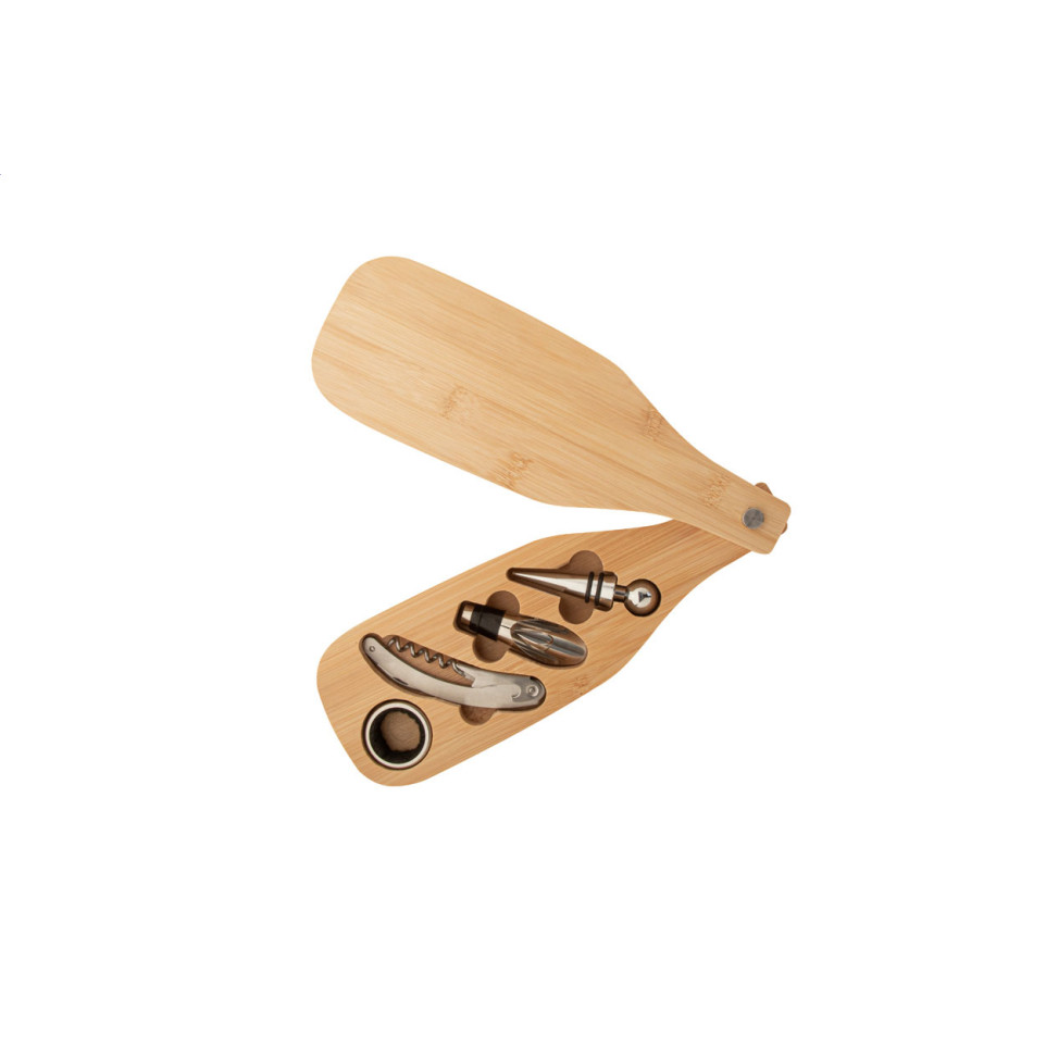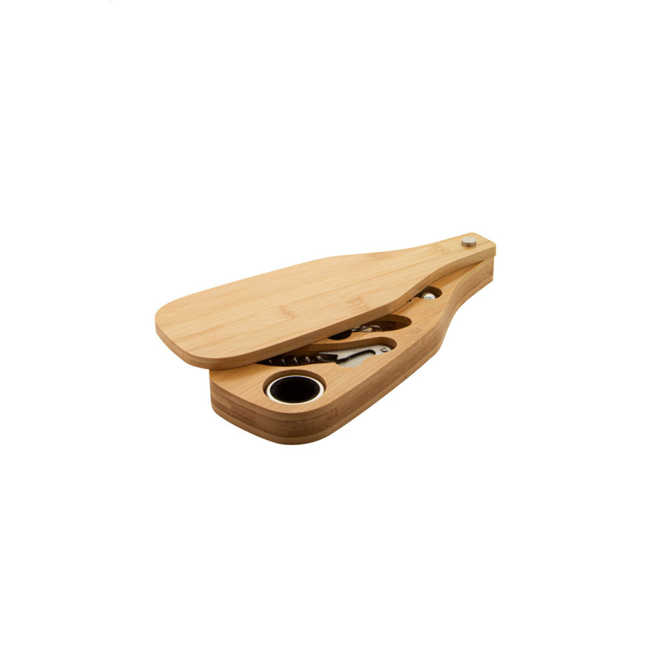 Can the Cortese wine set be customized with my company logo? Yes, both the bamboo case and potentially the metal components can be customized with your company logo through engraving or printing methods.