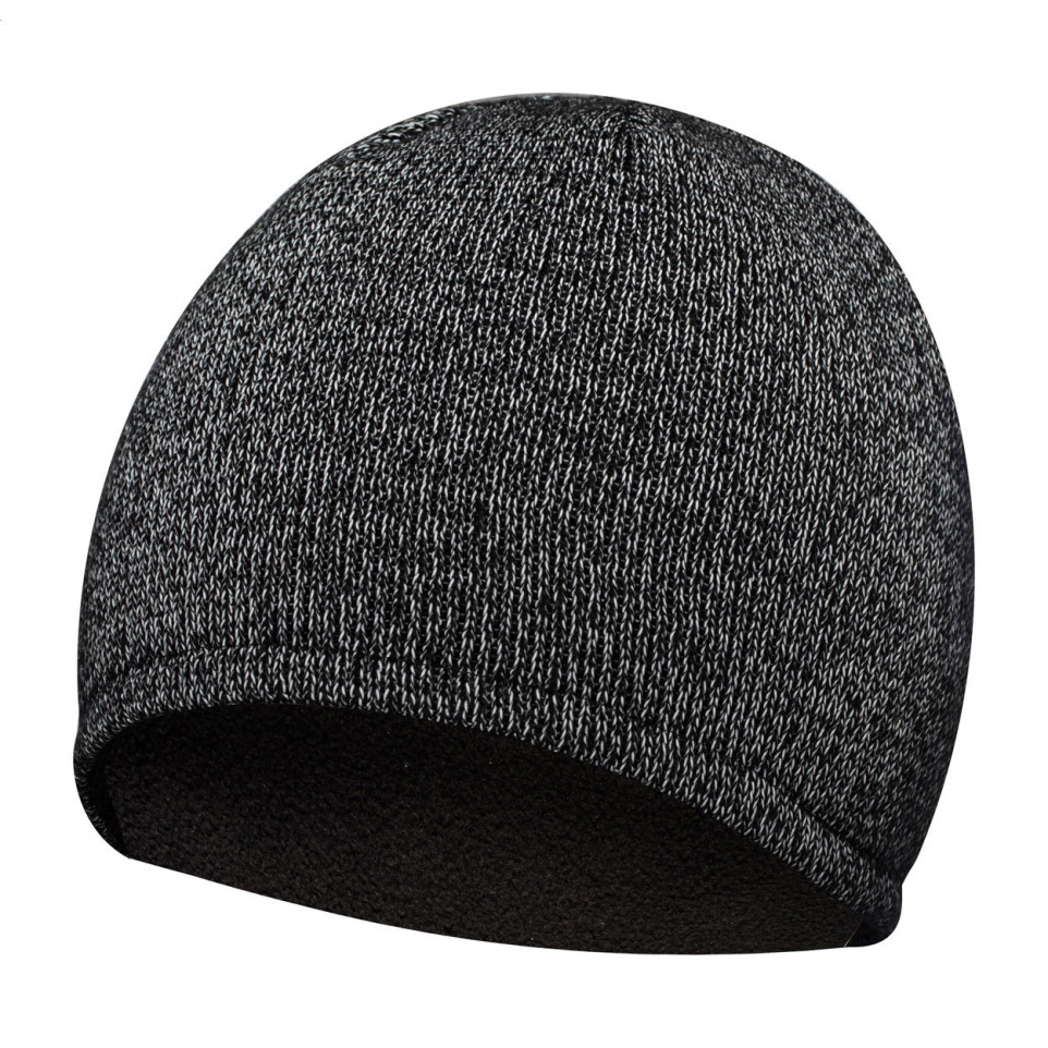 The Lucca black sport winter hat is a stylish and practical winter accessory featuring reflective material and cozy polar fleece lining, perfect for outdoor activities in cold weather conditions.