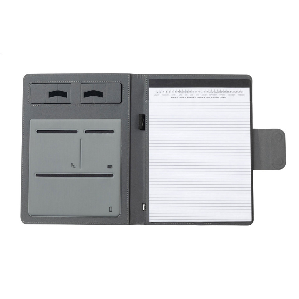 Perfect for corporate gifting during client meetings, trade show giveaways, employee onboarding packages, or as part of a sustainable company initiative. This folder is particularly effective at technology conferences, business seminars, and executive retreats where professionals need both document organization and device charging capabilities.