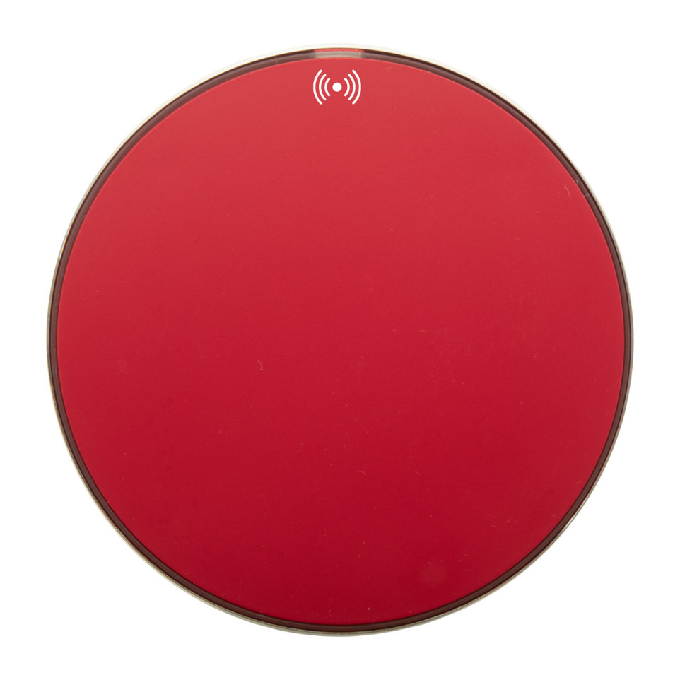 The Walger red wireless charger is a fast-charging pad crafted from recycled aluminium, delivering up to 15W for efficient wireless power to compatible devices. It features a slim, modern design and includes a USB charging cable for easy setup on desks or nightstands.