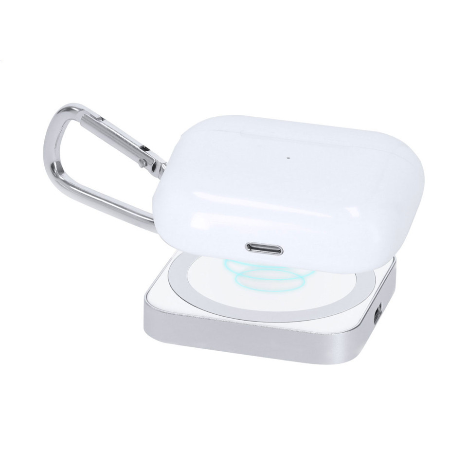 View products in the same categoryMagnetic wireless fast charger (15W) in a white aluminium housing with a carabiner, designed for efficient charging of smartphones, wireless earphones, and smartwatches. Compatible with iPhone 12 or newer and suited for everyday use at home, work, or on the go.