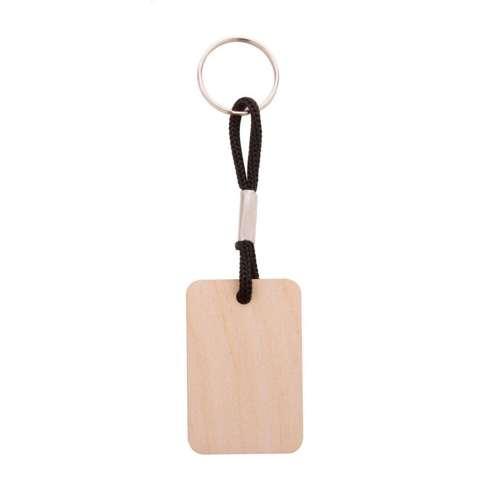 View products in the same categoryRectangular birch plywood keyring with a black natural finish, equipped with a colored polyester string. Designed for everyday use, it features vivid full-color UV LED printing on one side and is ideal for both personal and professional key management.