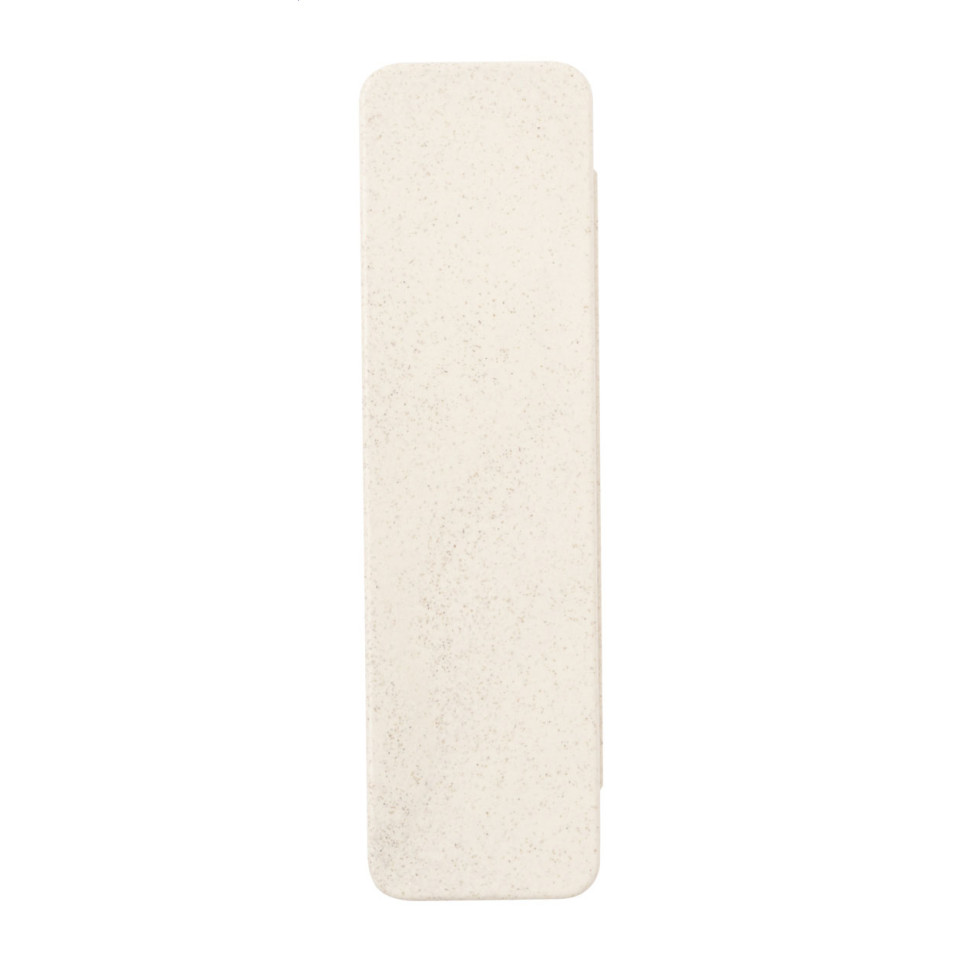 Set d’écriture de 5 pièces idéal pour le bureau ou les déplacements : il comprend un crayon à mine en bois, un stylo bille à capuchon avec recharge bleue, une règle de 15 cm, un taille-crayon en bois et une gomme, le tout présenté dans un étui en plastique de paille de blé écoresponsable.