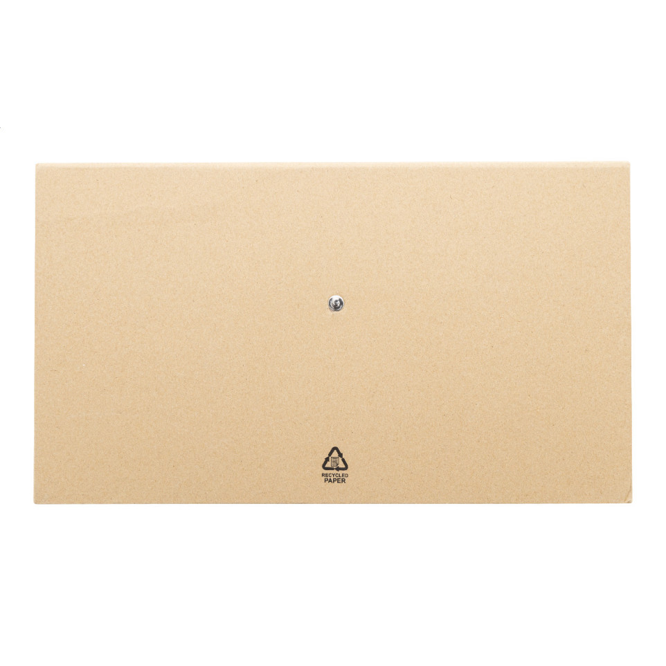 Agenda hebdomadaire de bureau en papier recyclé, doté de 50 feuilles non datées, 100 notes autocollantes en quatre couleurs et 125 marqueurs de page en cinq couleurs. Livré avec un stylo à bille en papier recyclé, encre bleue. Idéal pour organiser efficacement vos semaines au travail.