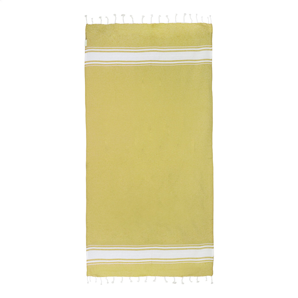 Voir des produits similairesLa serviette de plage paréo Cancun jaune est un accessoire extérieur bicolore alliant style et écoresponsabilité, idéal pour la plage, la piscine ou les loisirs en plein air.