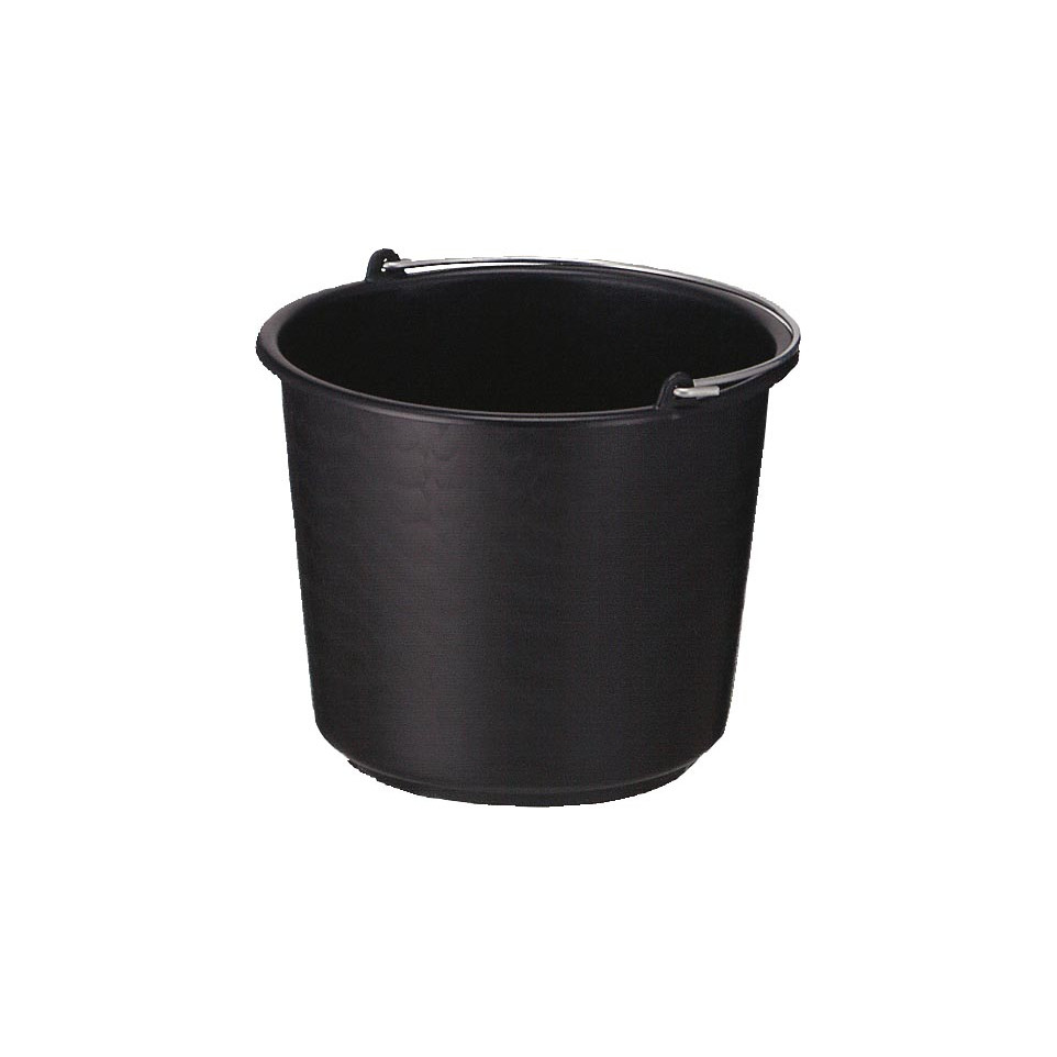 Seau de 12 litres de couleur noire, idéal pour tous types de travaux ménagers ou de nettoyage. Polyvalent, il convient à la collecte d’eau, au transport de liquides ou à la gestion des déchets domestiques.