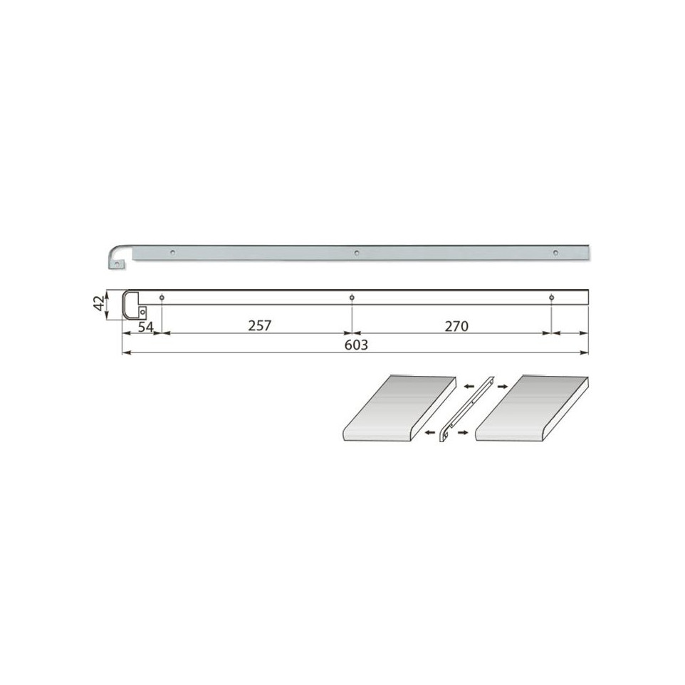 Profil de jonction en aluminium de 600 mm, conçu pour assurer la liaison nette et solide entre deux plans de travail dans une cuisine. Idéal pour les raccords droits, il apporte une finition sobre et soignée à l’aménagement intérieur.