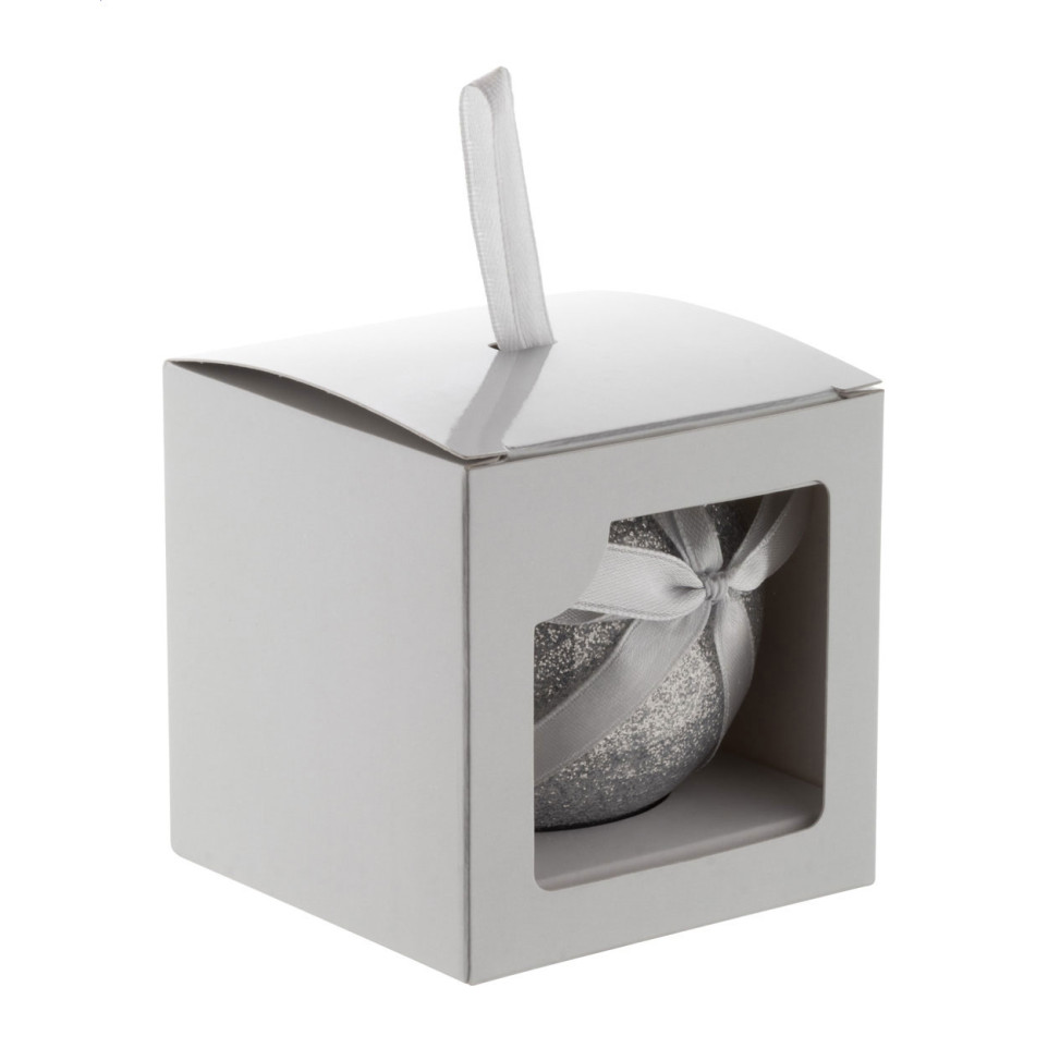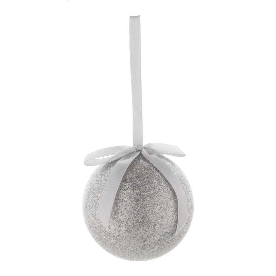 Boule de Noël Nordskot argentée en mousse PU, dotée d’un ruban de suspension, idéale pour décorer les sapins lors des fêtes ou pour agrémenter des événements d'entreprise. Diamètre : 75 mm. Présentée dans une boîte cadeau en papier assortie.