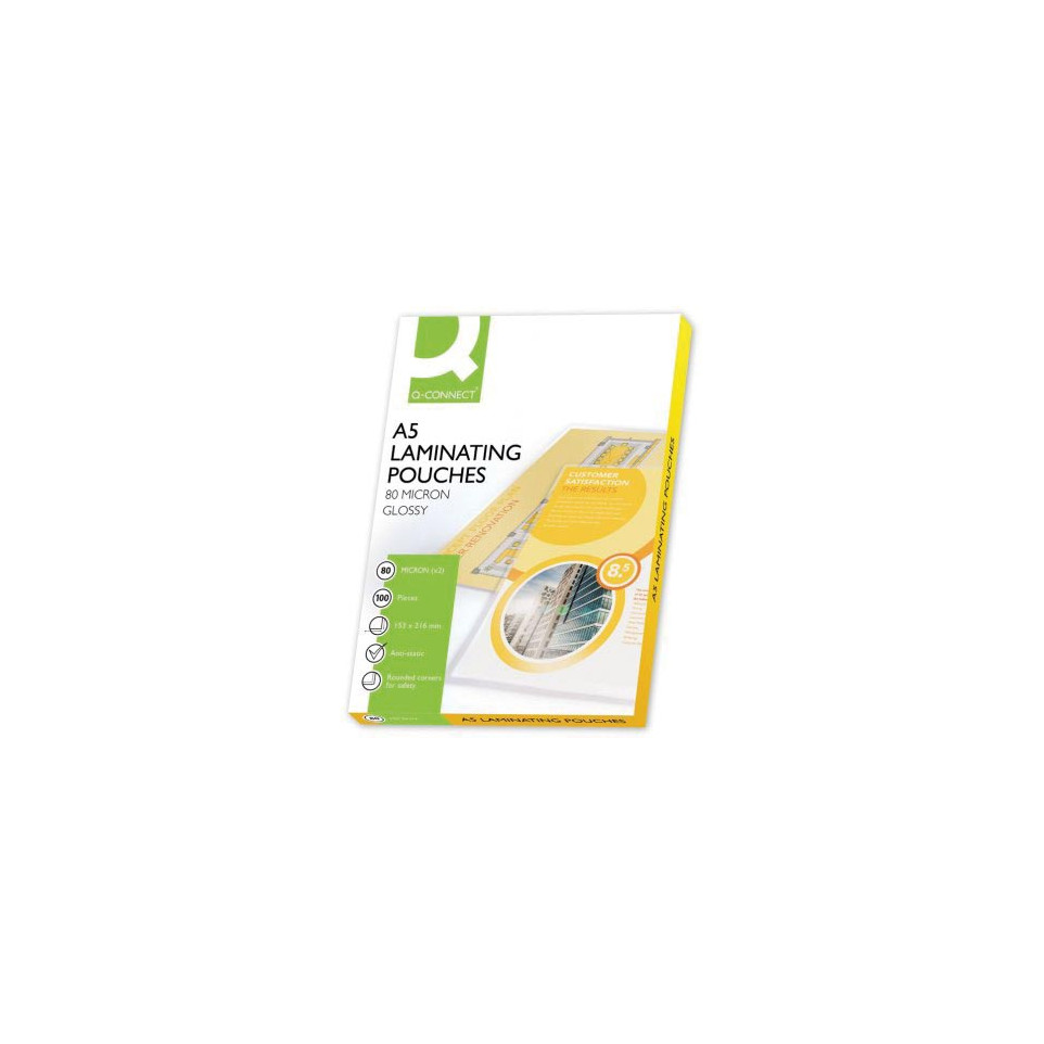 Les pochettes de plastification Q-CONNECT A5 permettent de protéger et de mettre en valeur documents, photos ou supports imprimés, grâce à leur finition brillante et leur format pratique de 153 x 216 mm, adaptées à un usage professionnel ou personnel.