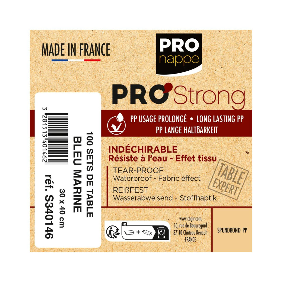 Barquette de 100 sets de table spundbond, unis - Format 30x40cm La marque Pro Nappe vous propose des produits de convivialité nappes, serviettes, assiettes, gobelets coordonnés aux couleurs vives et tendances pour recevoir de la meilleure façon. Ces sets de table en matière non tissée trés qualitative vous offrent un tombé parfait proche du tissu. Indéchirables, déperlants et éssuyables, ces produits permettront à vos tables de rester intactes longtemps. L'effet haut de gamme mettra votre vaisselle et votre décoration en valeur sur votre table en restaurant comme chez vous, en toutes occasions : fêtes d'anniversaires, banquets, mariages, baptêmes, noël. Produits fabriqués en France et recyclables. Teintés dans la masse, l'encre, adaptée, ne déteint pas et ne décolore pas à la lumière. En barquette de 100 sets de table.