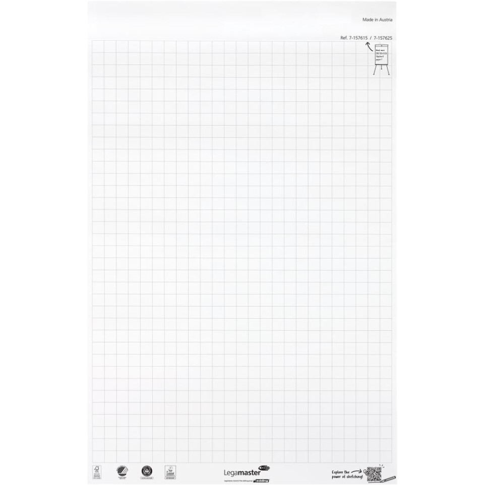 Papier tableau de conférence Legamaster Sketch ECO, format 65 x 98 cm, quadrillé avec grille de 2,5 x 2,5 cm, conditionné en paquet de 50 feuilles, livré en lot de 2 blocs. Idéal pour les réunions, présentations ou formations.