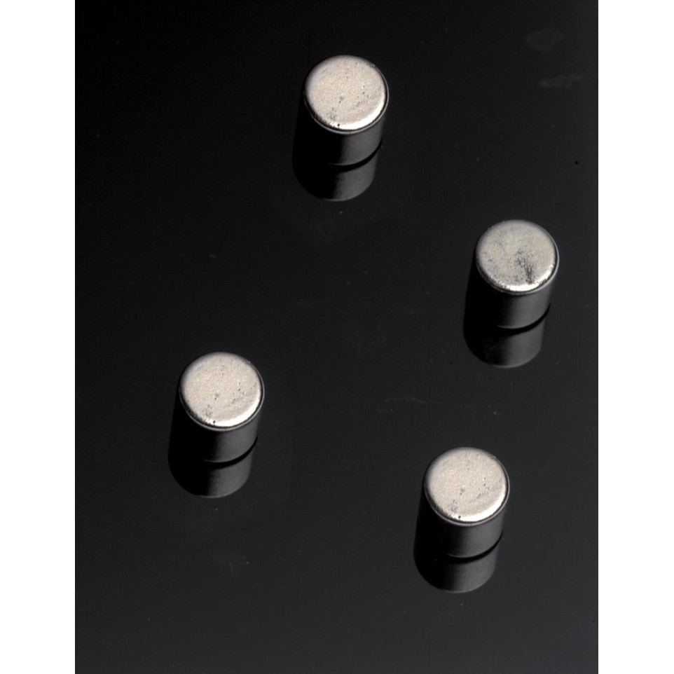Aimants cylindriques en acier, adaptés aux tableaux en verre, présentés en lot de 4 pièces. Parfaits pour fixer documents, photos ou notes tout en conservant un aspect épuré.