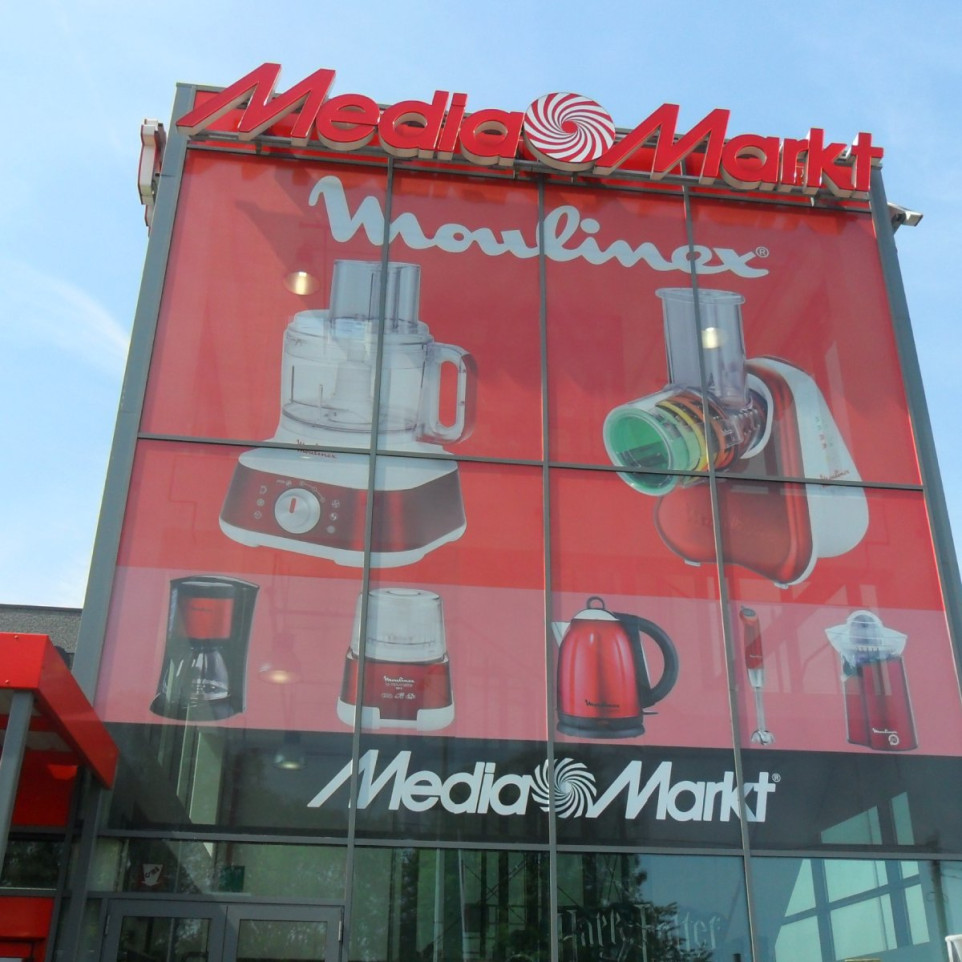 A1. Impact visible dès l’extérieur : Grâce à la pose extérieure, votre message capte immédiatement le regard des passants, sans être filtré par la vitre, avec des couleurs fidèles et lisibles de loin.
